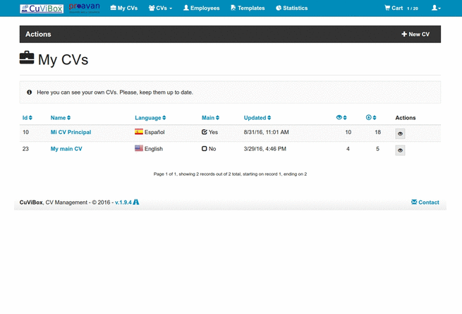 - Each employee will be able to register 5 CVs, in different languages and with different objectives.